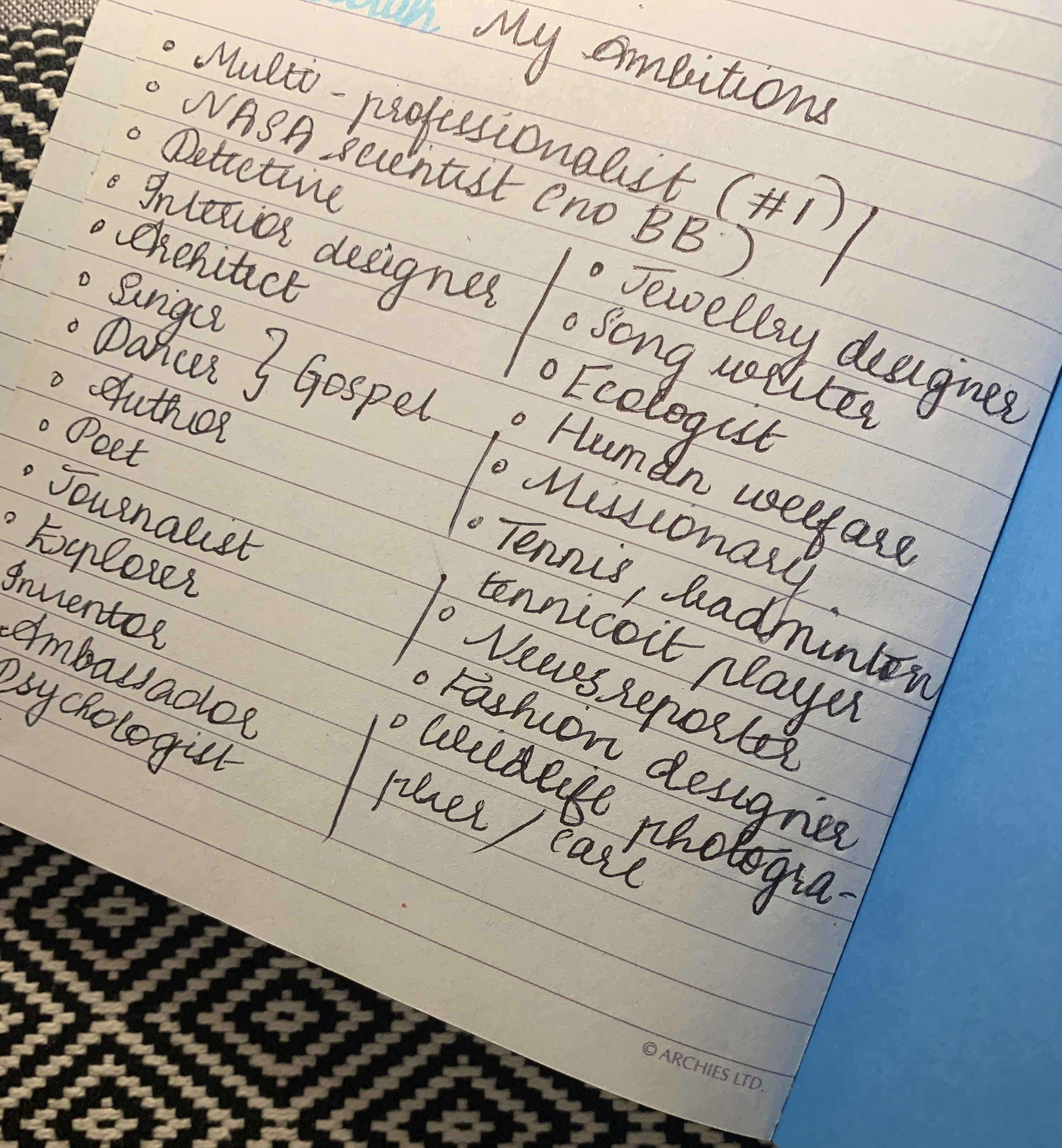 On the last page of my diary from when I was thirteen, I found a list of all the things I wanted to be if I could be anything.