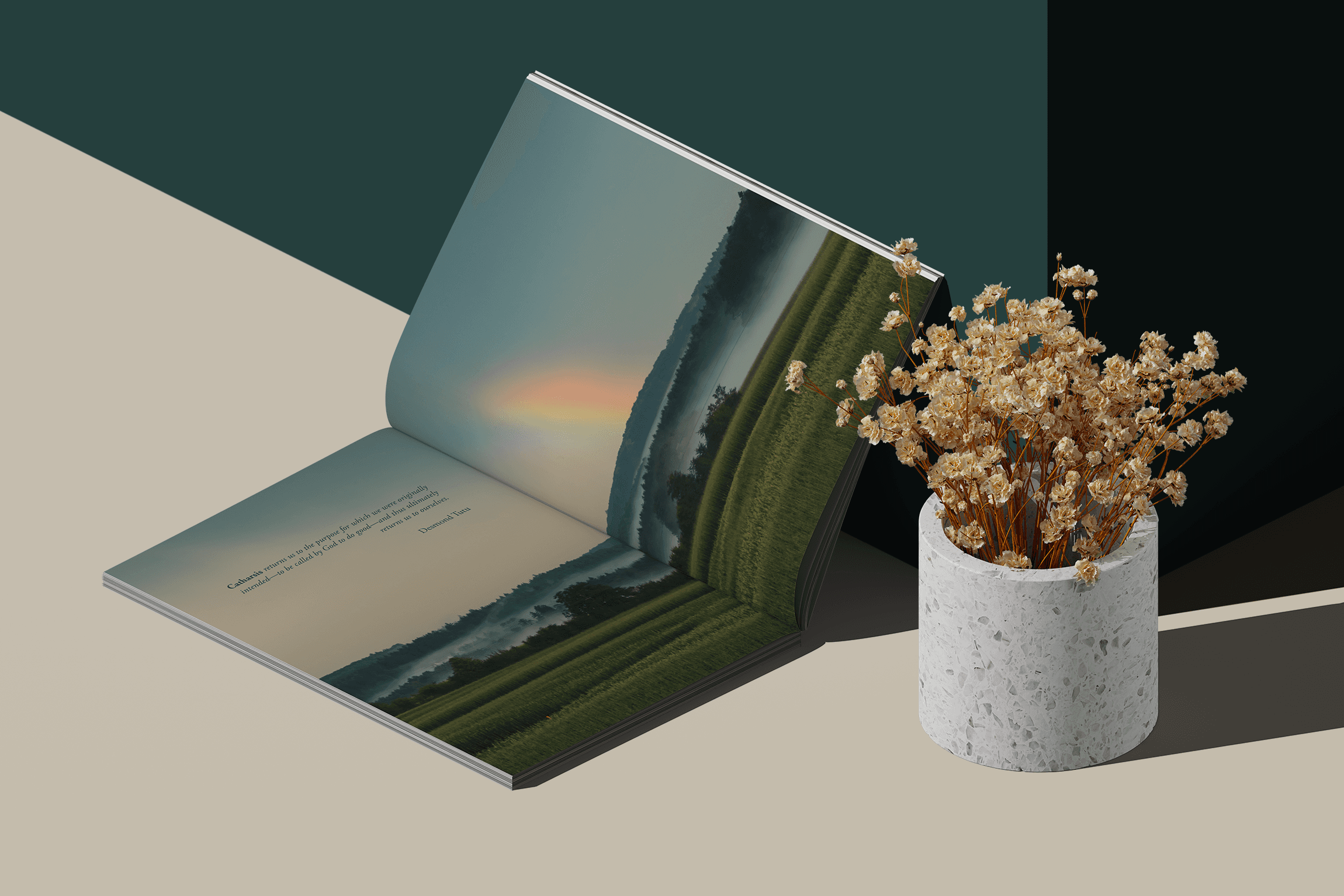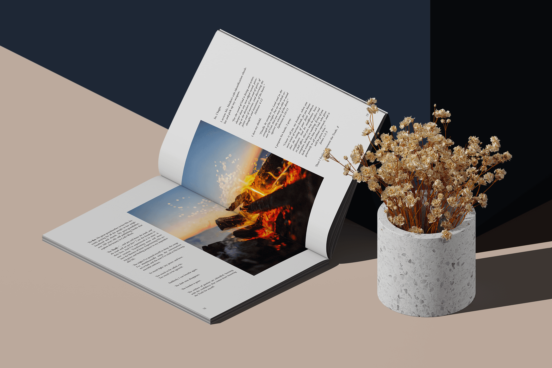 Analyzed magazine layouts balancing heavy themes with visual warmth