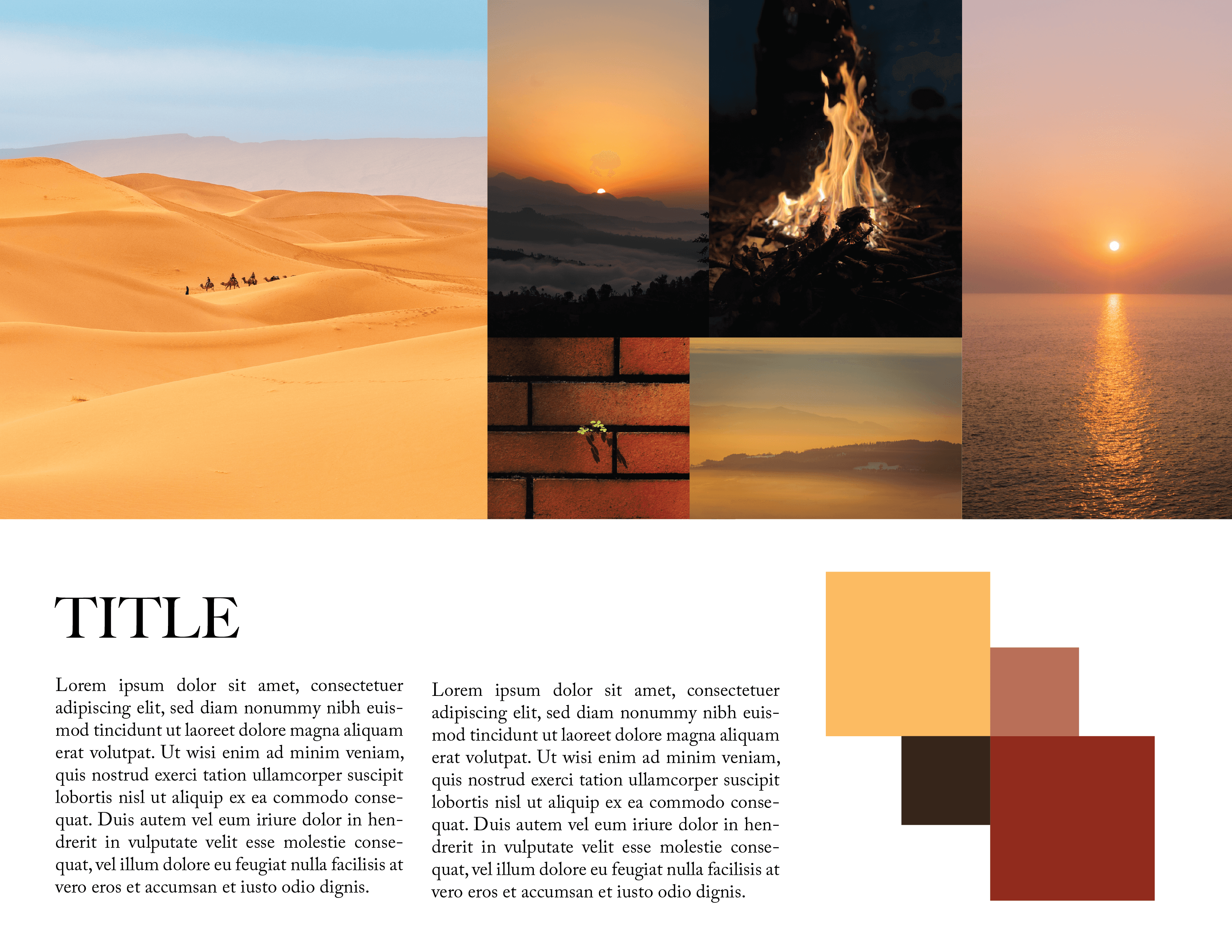 A warm, nature-led direction was chosen, incorporating subtle textures, an orange–teal palette, and open layouts.