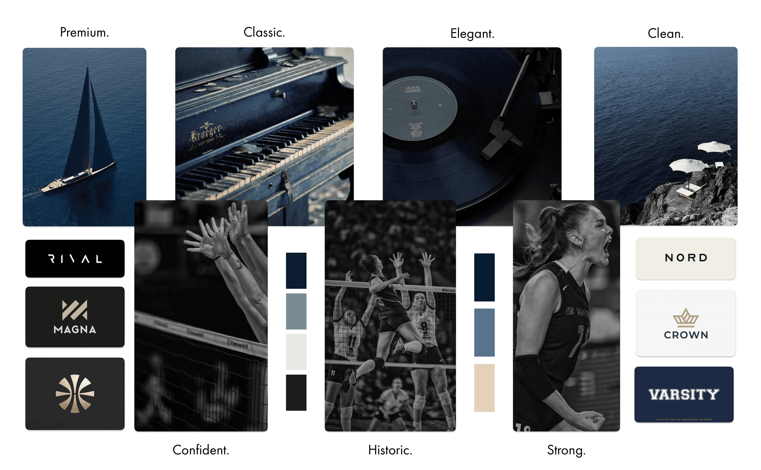 The discovery work also clarified the brand’s core identity: efficient, lean, and modern, with a premium feel that reflects the quality of the software. Clean sans-serif type, a blue-and-white palette, and a digital-friendly icon were all priorities, along with a personality that balances professionalism with a confident, slightly playful edge. This direction established the foundation for a brand that is tech-first, volleyball-informed, and built for clarity, credibility, and future growth.